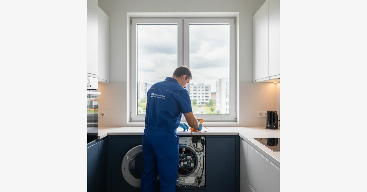 Specjalista sprawdzi urządzenie na miejscu, precyzyjnie określając przyczynę awarii sprzętu AGD.